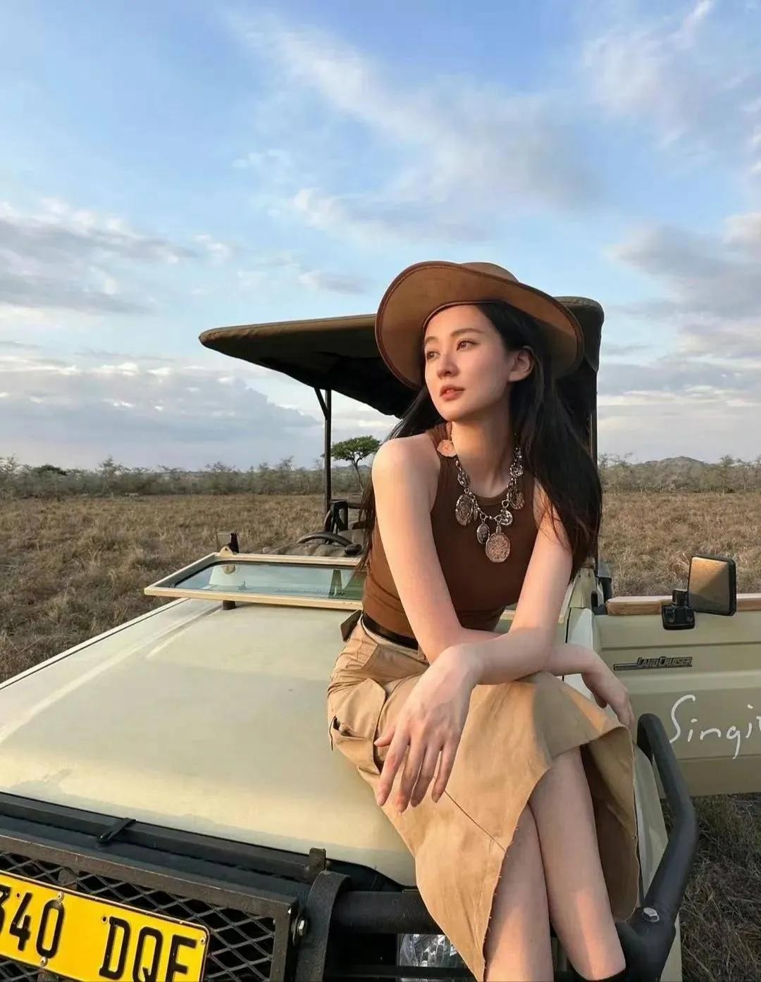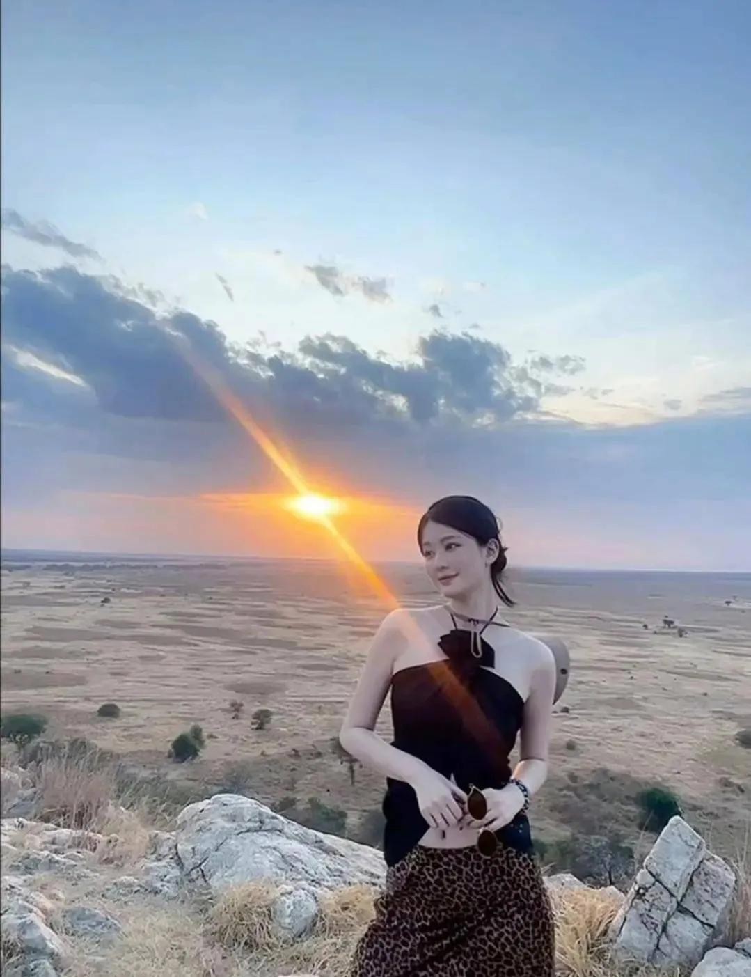 31岁乔欣结婚后现身非洲,穿豹纹裙配丝巾,火辣得像换了个人