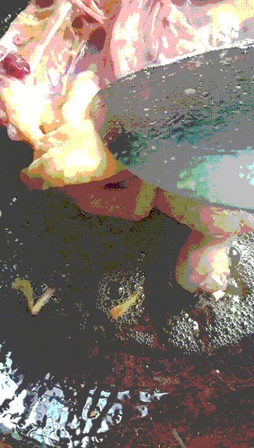再把鸭腿放进锅内煎一下,煎到表面金黄。