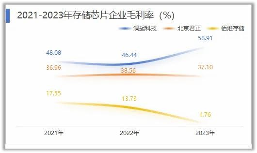 2021年,公司毛利率为48.08%,2023年就已经上升到58.91%。反观同行业企业,北京君正毛利率稳定在35%左右,也还算说得过去,而佰维存储2023年毛利率甚至滑落到1.76%,真是少得可怜。