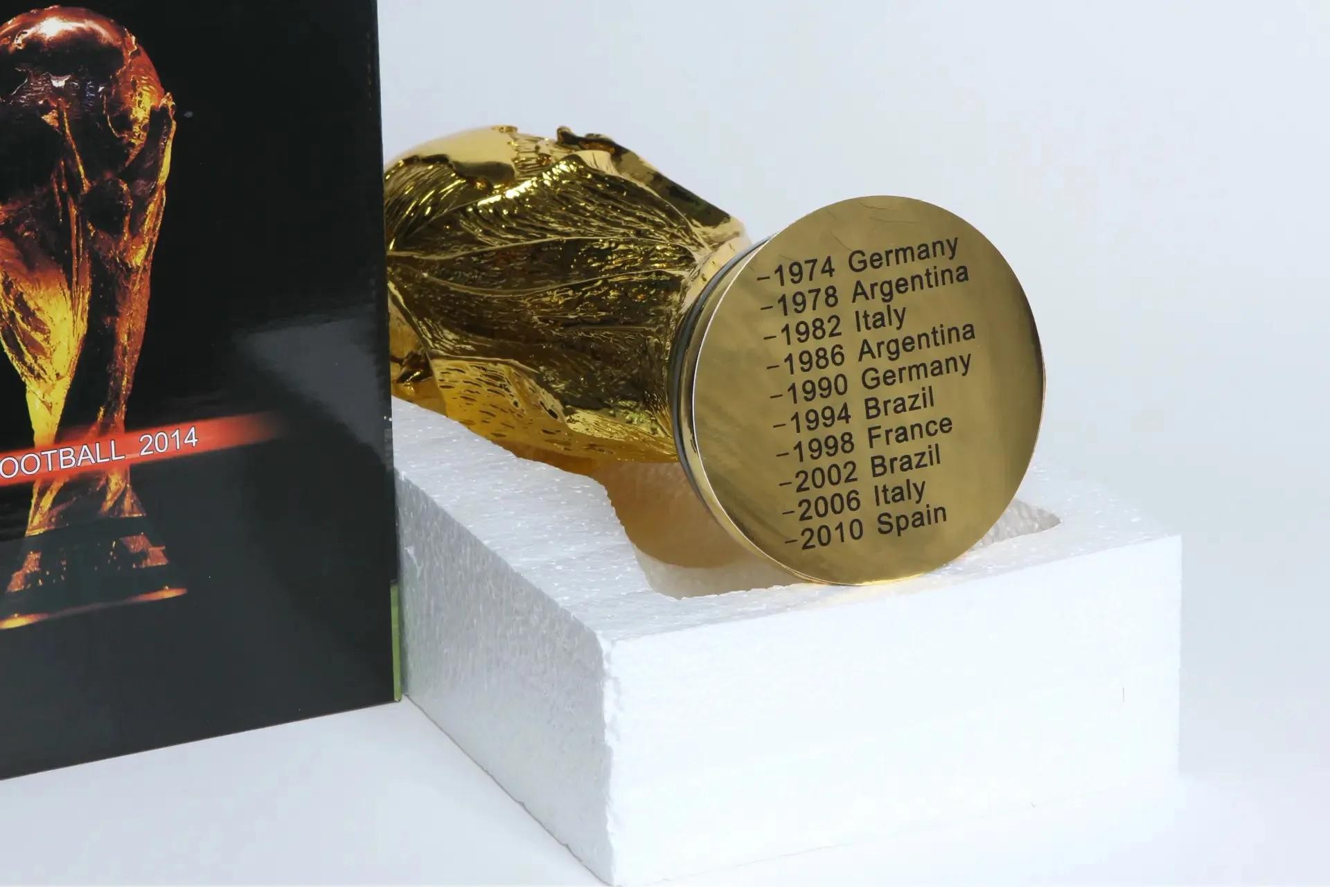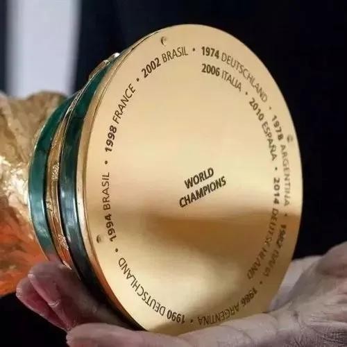 至于真正的大力神杯,则会在底座上刻上每一个获得世界杯冠军的国家的名字和年份。这个国家的名字需用自己本国的语言雕刻。