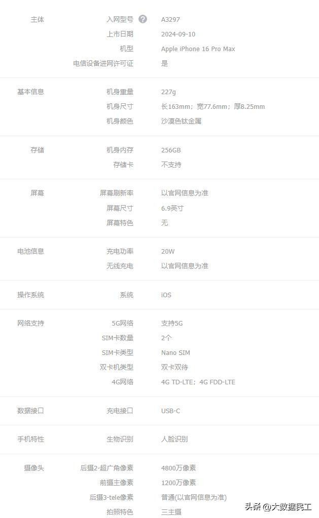 性能强劲:苹果的 A 系列芯片一直以来都以强大的性能和出色的功耗控制著称。iPhone 16 Pro Max 搭载的最新 A18 芯片,无论是日常使用中的各种 APP 切换,还是运行大型游戏、进行视频编辑等高强度任务,都能轻松应对,流畅度堪称一流。优秀的系统生态:iOS 系统拥有丰富的优质应用,并且系统更新及时,安全性高。其简洁易用的界面和流畅的操作体验深受用户喜爱。同时,苹果的生态系统非常完善,与其他苹果设备的联动性极强,如 AirPods、Apple Watch 等,能够为用户带来更加便捷的使用体验。出色的拍照能力:苹果手机的拍照一直以真实还原、色彩准确而受到赞誉。iPhone 16 Pro Max 配备了更先进的摄像头系统,无论是白天还是夜晚,都能拍摄出清晰、细腻、色彩鲜艳的照片。而且,其视频拍摄功能也非常强大,对于喜欢拍摄短视频的用户来说是一个绝佳的选择。高品质的屏幕:拥有一块 6.7 英寸的 OLED 屏幕,分辨率高,色彩显示鲜艳,对比度高。无论是观看高清视频、玩游戏还是浏览图片,都能带来极佳的视觉体验。此外,屏幕还支持高刷新率,操作更加顺滑流畅。