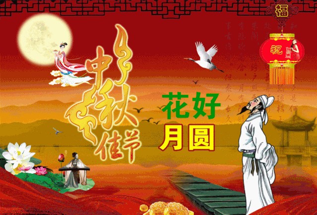中秋节祝福语图片动态图,中秋快乐、花好月圆!