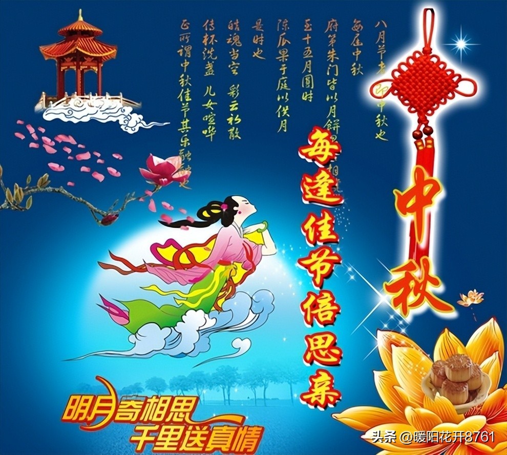 22、衷心祝福送给您:和美幸福无烦恼,愿您吉祥福星高 高照。中秋快乐,阖家团圆。