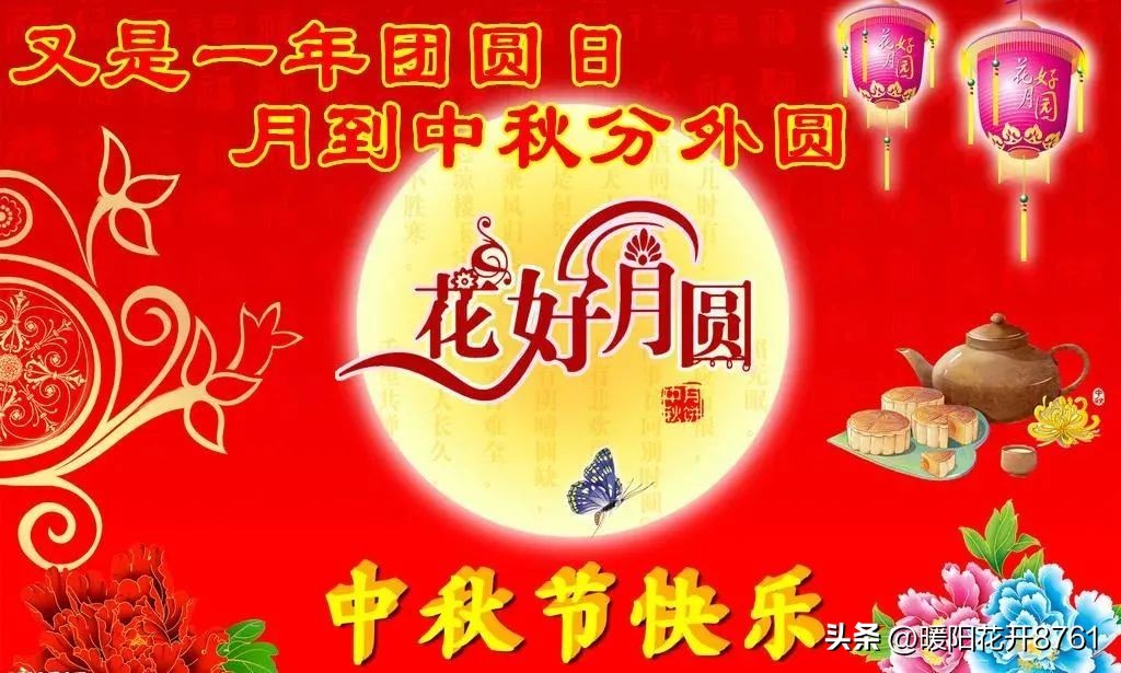 18、八月十五中秋到,月到中秋分外明。丹桂飘香香万里,团圆欢乐乐正浓。祝愿月圆人亦圆,把酒赏月笑开颜!