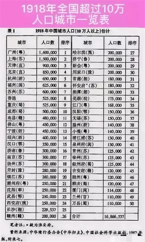 小榄镇在民国期间就有很多人口,当时有一份人口统计表,提到的小榄就是能够在全国排名城市人口前50的榜单中的第39名,比起当时的常州、泉州、厦门等知名城市的人口还要多。