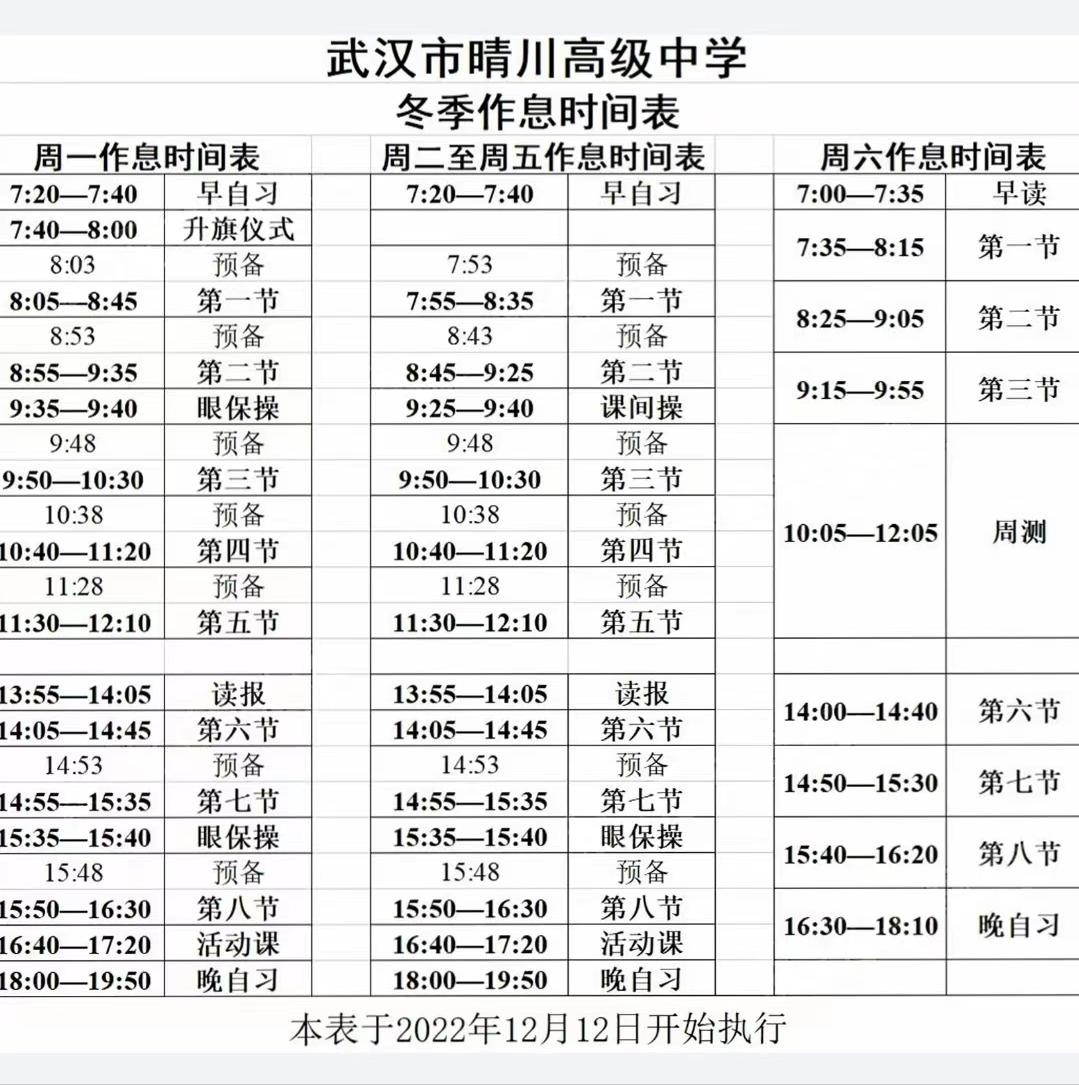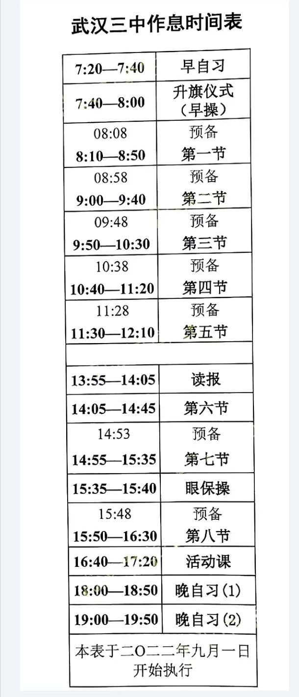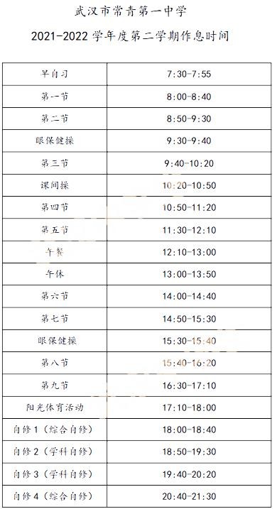 武汉23所高中作息时间汇总