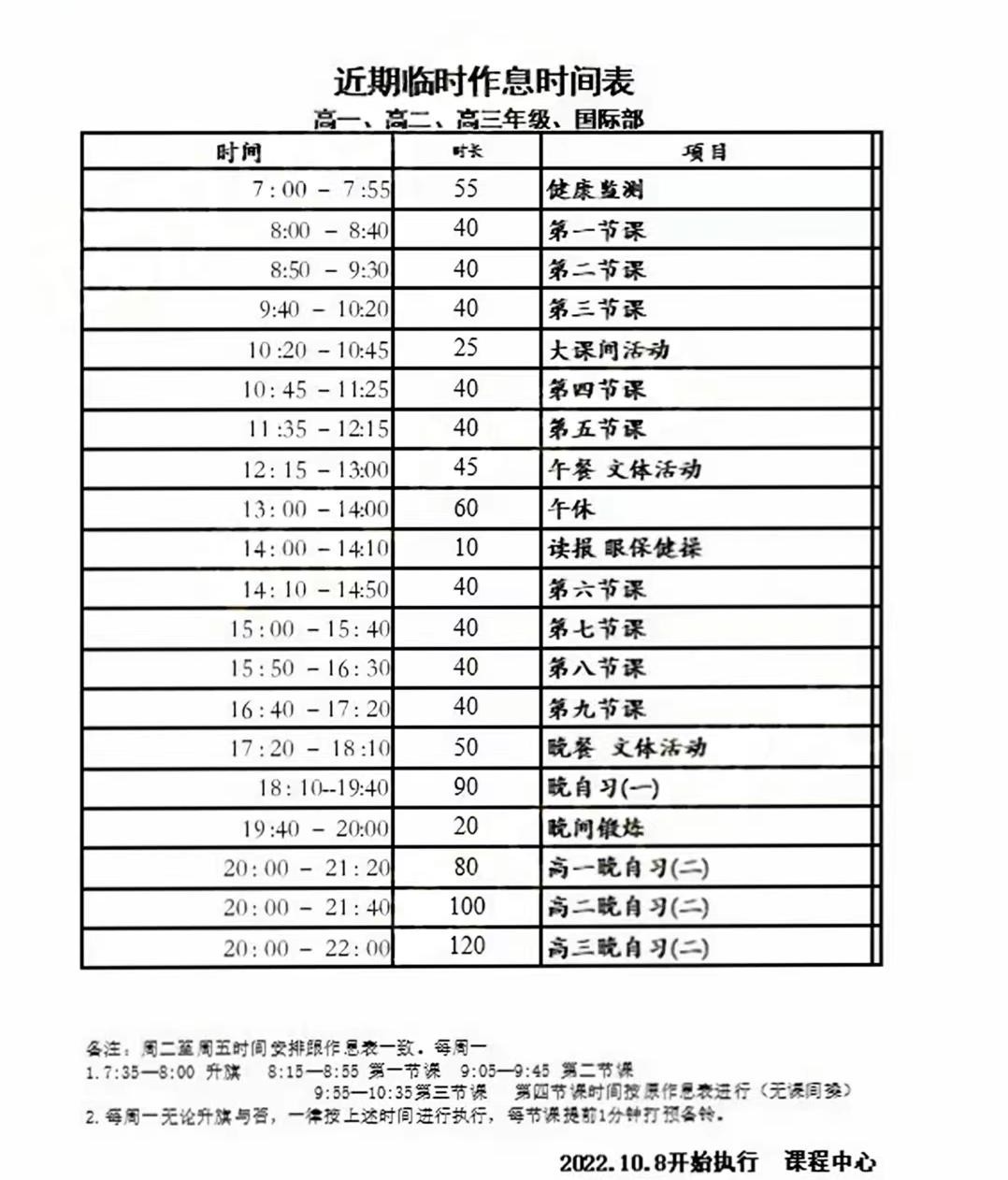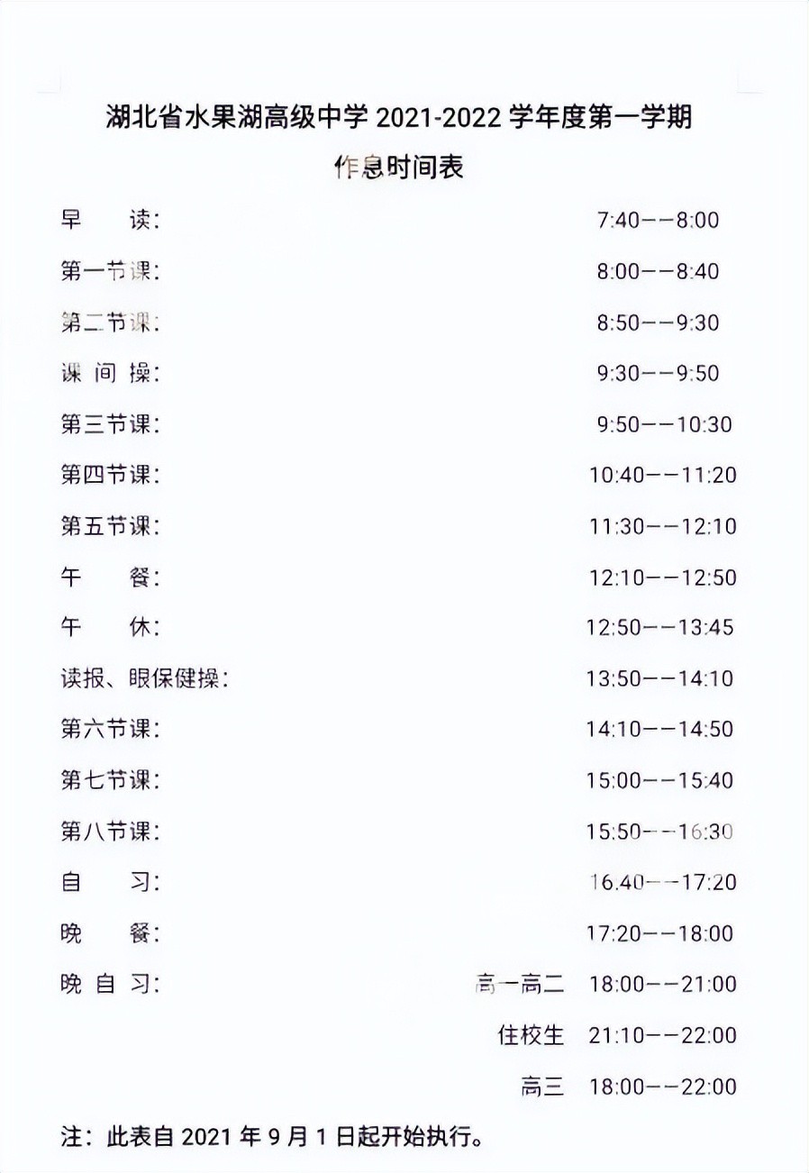 关于作息时间,没有调整的情况下,一般早上7:20开始早自习,晚上9:30结束晚晚自习。
