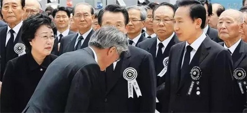 在卢武铉的葬礼上,面对李明博,文在寅强忍悲痛,向民众宣布:"这不是结束,而是新的开始。"