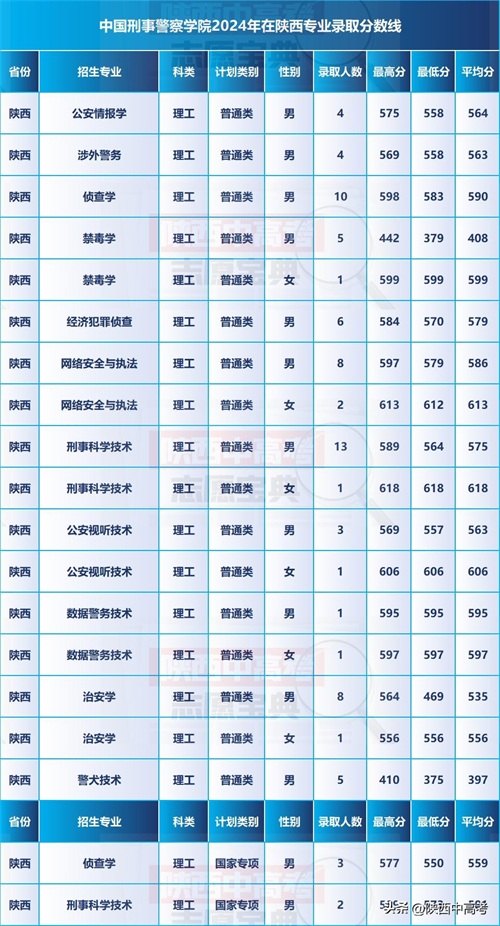 高考必备 | 中国刑事警察学院2024年在陕西专业录取分数线发布!