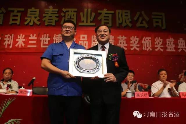 时过一年整,2016年9月9日下午,2015年意大利米兰世博会“品牌精英奖”颁奖盛典在百泉春太行酒城举行,联合国华人协会会长、2015意大利米兰世博会中国企业联合馆经贸文化艺术展组委会副主席蒋位卿,亲手给河南省百泉春酒业有限公司颁发了“品牌精英奖”荣誉称号,并祝愿百泉春能够百尺竿头更进一步,走出家门,走出国门,走向世界!