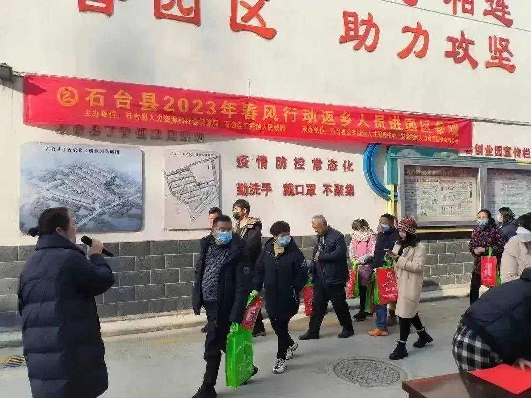 为让企业招工“有路”、务工人员就业“有路”,切实解决丁香创业园区企业招工用工难题,引导农村劳动力就近就地就业, 1月11日,石台县人社局联合丁香镇人民政府举办 “春风行动”返乡务工人员进园区参观体验活动。