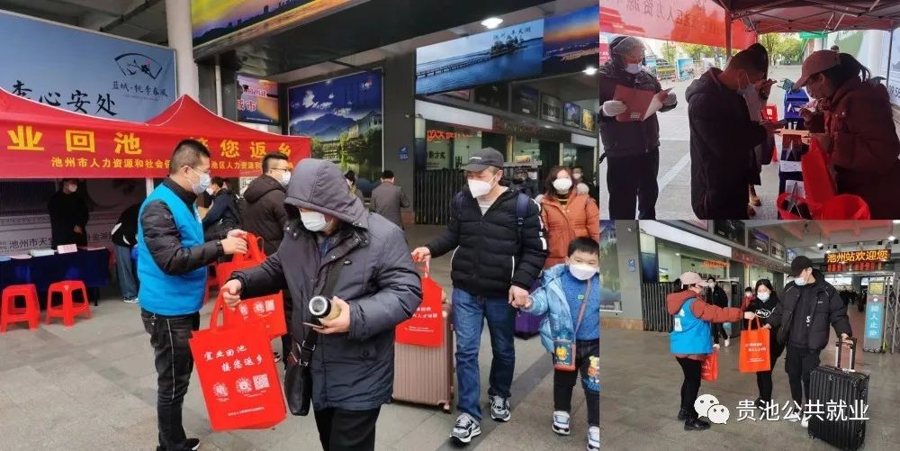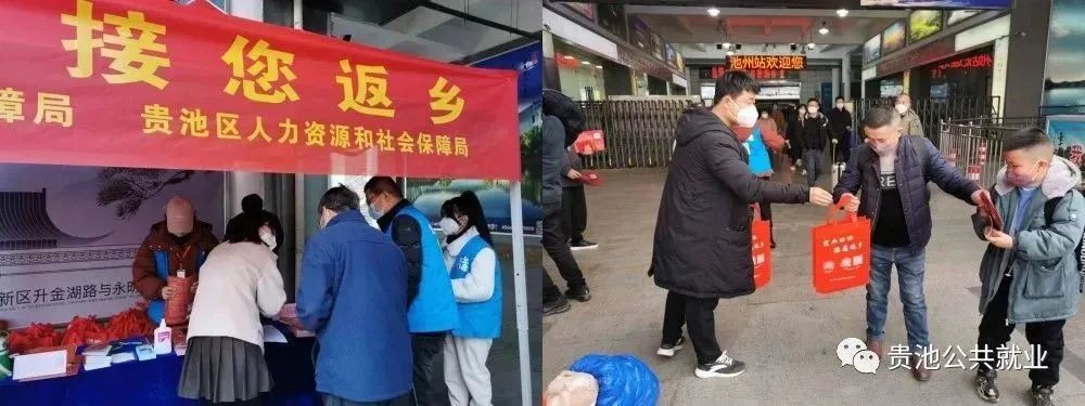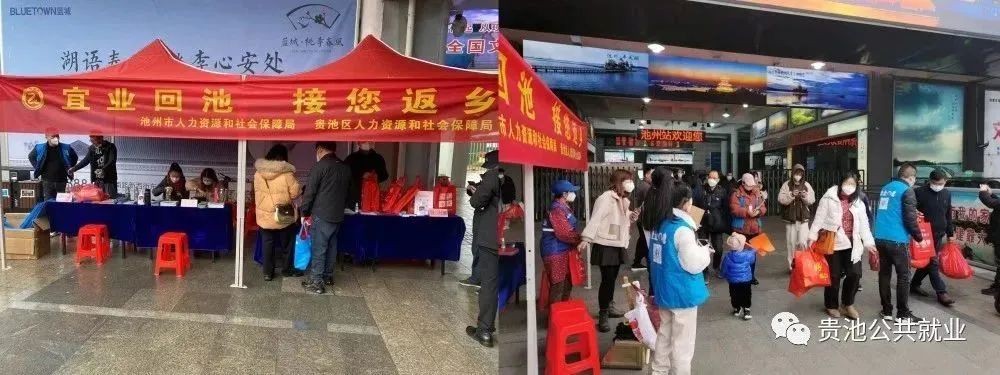 1月12日,市、区人社部门联合在池州高铁站出站口举办“宜业回池 接您返乡”活动。