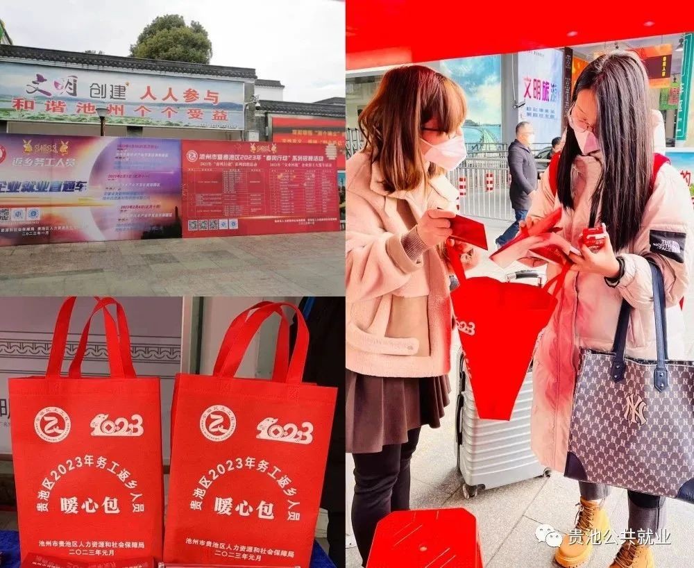“大家看看这个’暖心包’,里面有池州市区企业用工信息、就业创业政策汇编、暖心小礼品,通过扫码‘宜业回池’小程序可登记求职信息。”每一个乘客出站,工作人员都递上一份‘'暖心包'’,并向大家详细介绍岗位信息、薪资福利待遇,指导他们找到合适的岗位,给返乡人员送去新春温暖与关怀。此外,活动还邀请了高新区企业人事参与其中进行零距离对接,更好地为求职者现场提供就业咨询服务。