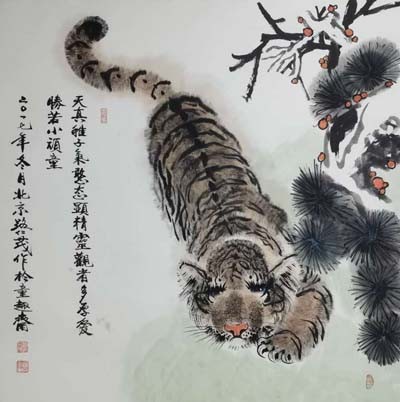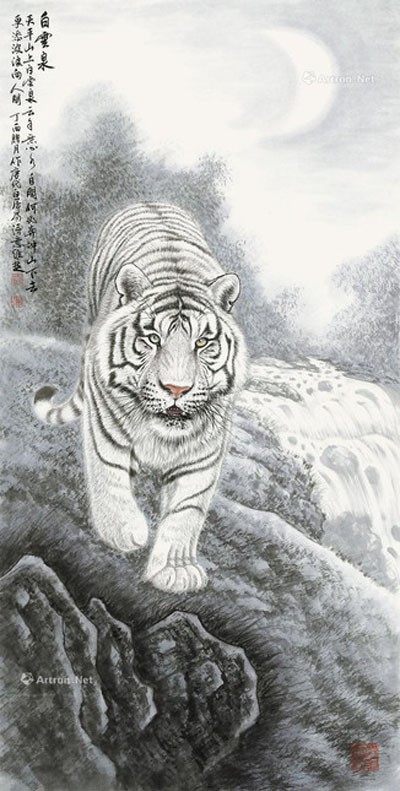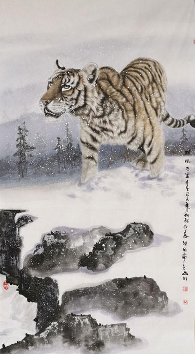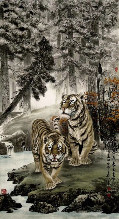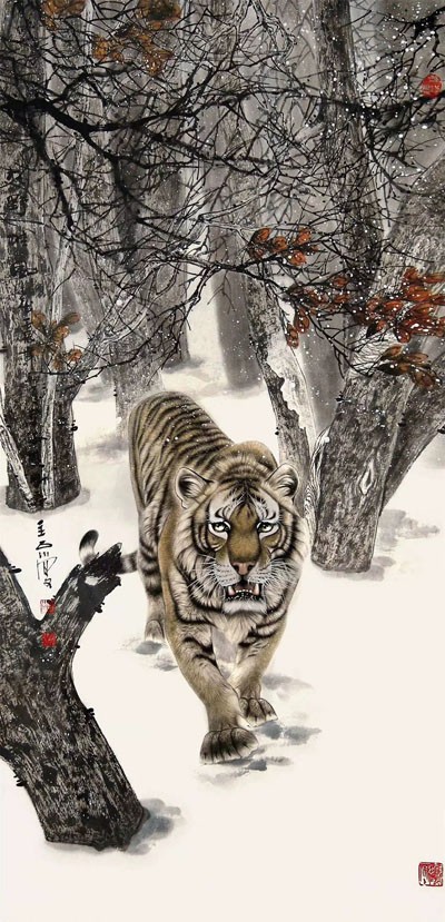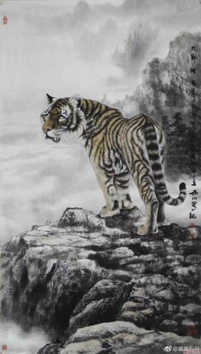 导语:当今画坛,画虎名家众多,且各有千秋。但真正有艺术价值,经得起历史检验者,当属三人:吕维超、石川、路仁茂,世称"画坛三虎"。这三位艺术家均有雄厚文化底蕴与非凡国画功力,国画诸科均有涉猎,且诸科巨佳,但尤以画虎为上。这三位艺术家笔下之虎,名震华夏,誉满中外,具有极高收藏价值。
