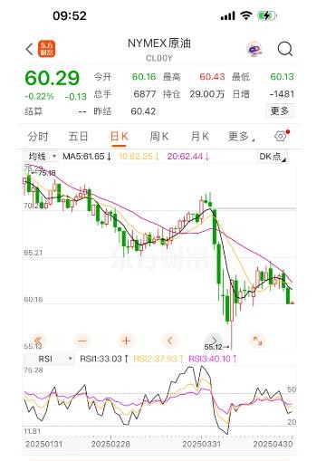 4月28日、29日两天,国际油价连续两天下跌,其中4月28日,纽约、布伦特原油期货分别下跌1.79%和1.93%,4月29日更是分别大跌3.08%、2.75%。目前国际油价均处于相对低位,纽约原油期货勉强维持在60美元/桶大关上方。