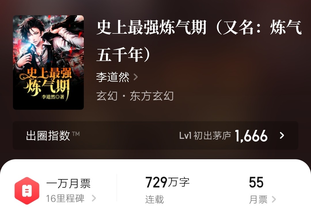 书评:布局不错,没有什么硬伤。也没有太让人反感的设计和重复,整体来讲还不错。主角不是上辈子无敌转世重修,也不是脑袋有个无敌系统。而是一修炼了五千年都还没突破炼气期的存在,师父飞升了,他在炼气期;师兄也飞升了,他在炼气期:徒弟又飞升了,他在炼气期,师门被灭了,他还在炼气期,估计一辈子都在炼气期了吧。不过可别小看炼气期,别人炼气十二层就突破炼气期,主角却把炼气期修炼到了一万层的地步,吊打各境界强者都不是事儿。面对敌人常常一出手就解决战斗,至今未使出过全力~