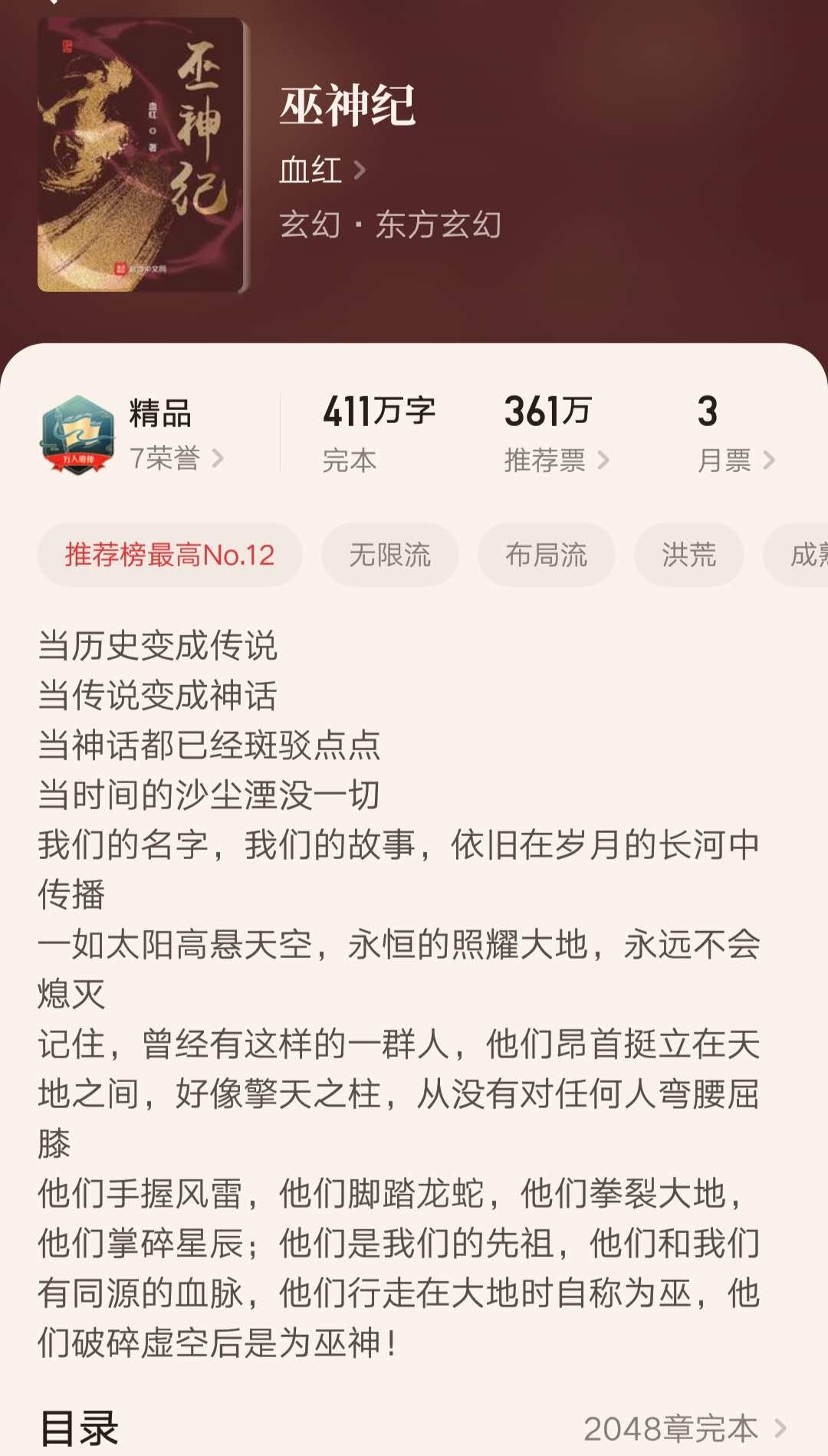 这本小说是东方神话修仙类小说,背景是远古未开人之时,异域外族强大而人类孱弱。主角穿越而来,解救人族于水火的故事。作为老牌网文作者,血红将笔下人物的狠毒、狡猾,信任与激情这些因素完美融合,构架起一个宏大的世界观。据说这本小说是《巫颂》是系列文。当简介本身就带有超凡脱俗的感觉时,这部作品的好便不需要我再画蛇添足,看就得了!