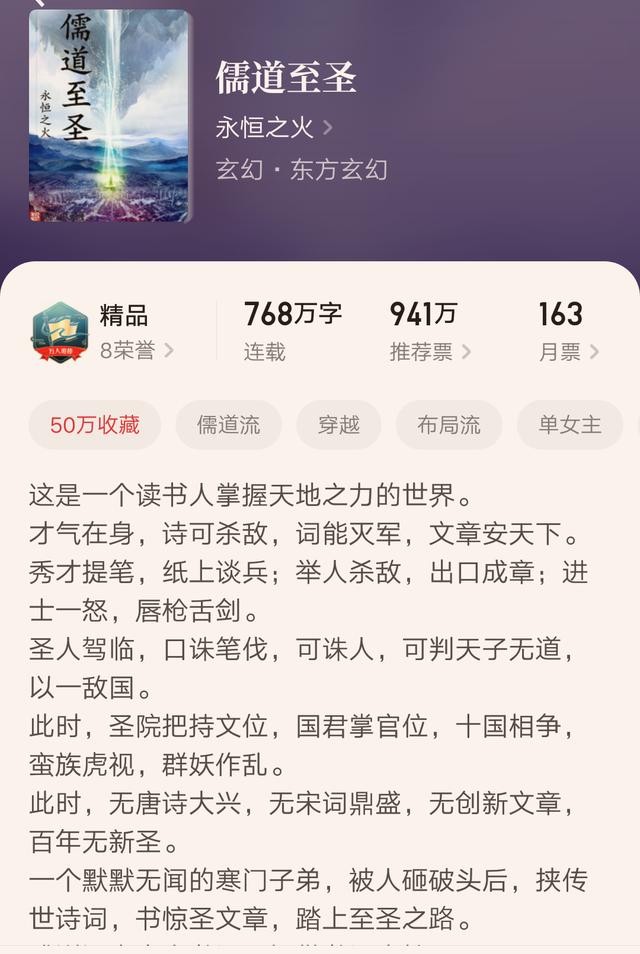 寒门士子崛起于微末,于异族中脱颖而出,继往圣绝学,以文护族人,为万世开太平,情节环环相扣跌宕起伏,可见作者文学底蕴之深厚了。这本小说是文人流开山之作,写文作诗当作战斗,当时在网文界很是火了一把,即使拿到今天来看,也是不可多得的经典。