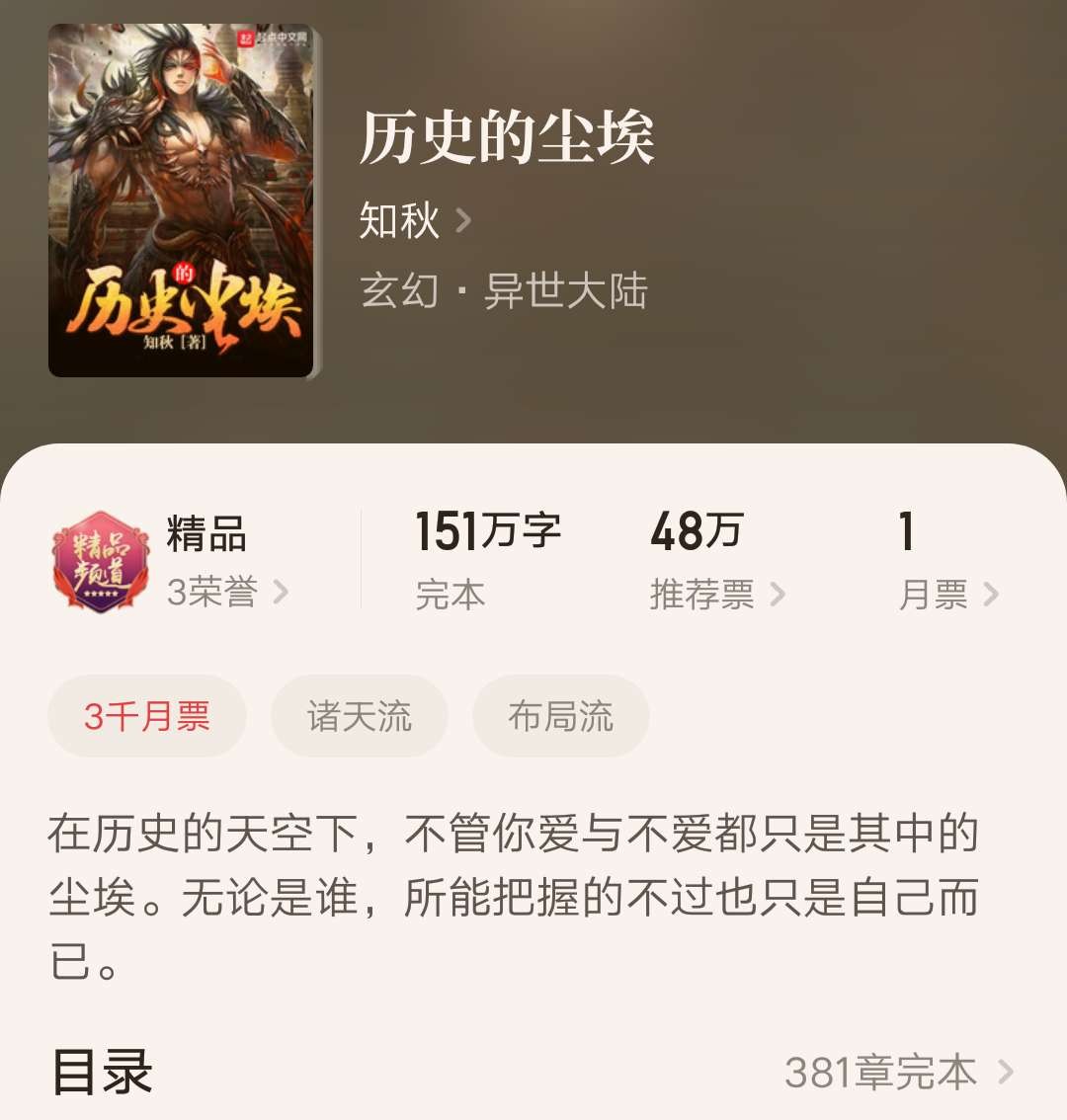 这个深奥的书名一度让我认为这是一部历史题材的小说,没想到这却是一部玄幻佳作。虽然这是一本老书,但是文笔一流,剧情精彩,人物性格分明情感细腻。而书名想要展现的就是,在恢宏的历史面前,个人便是尘埃般渺小,无法阻挡历史前进的脚步。所以,虽然书名过于正式,但是故事却是经典中的经典。