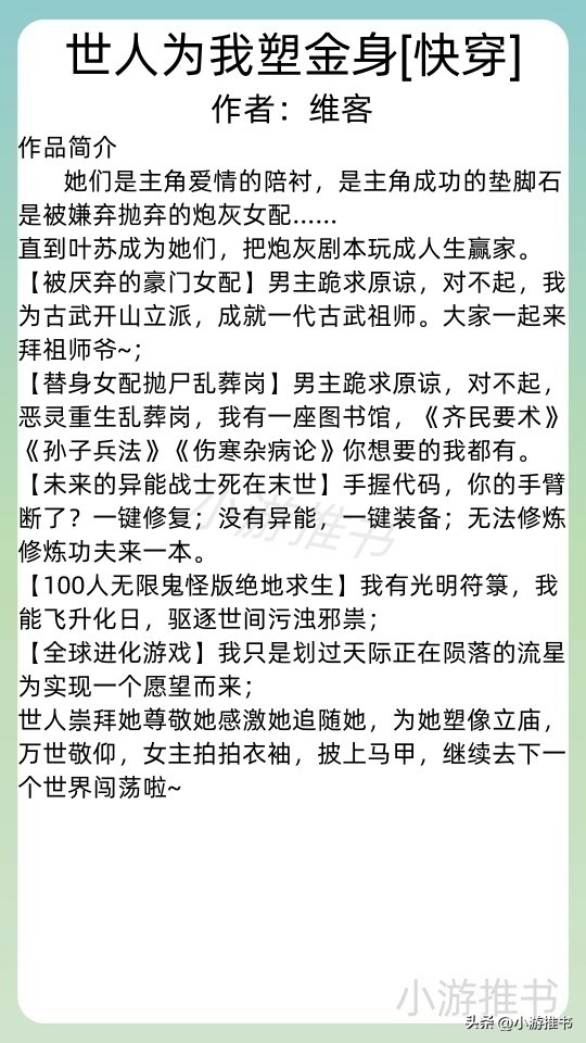 书荒推荐丨盘点20本不容错过的快穿小说,《女配(快穿)》超赞