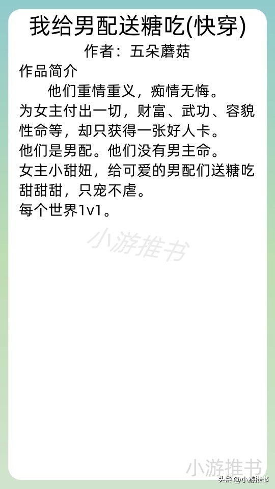 12.《我给男配送糖吃(快穿)》 作者:五朵蘑菇 //字数:79w