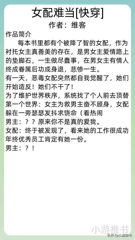 09.《女配难当[快穿]》 作者:维客 //字数:57w