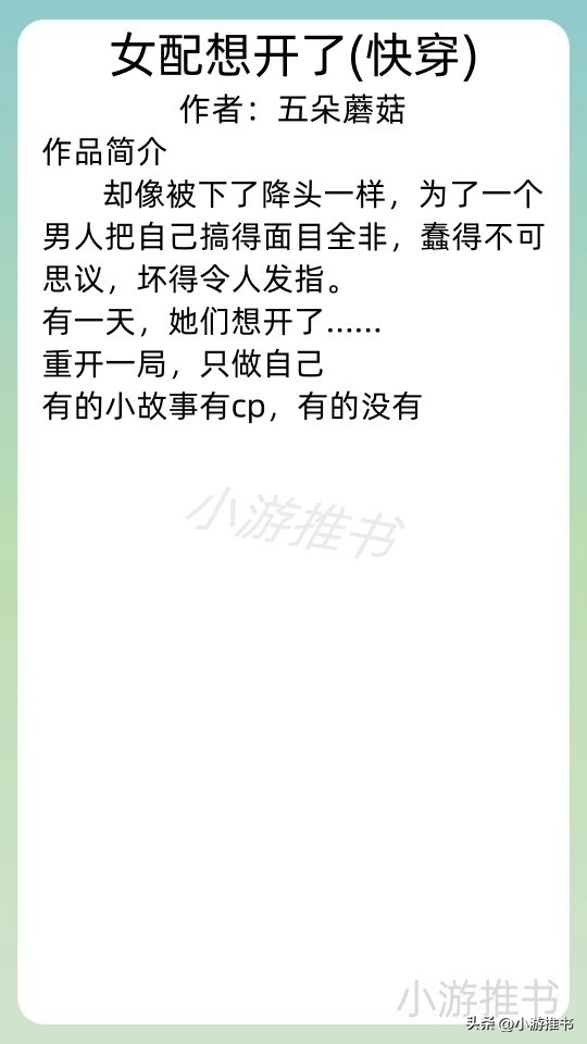 11.《女配想开了(快穿)》 作者:五朵蘑菇 //字数:128w