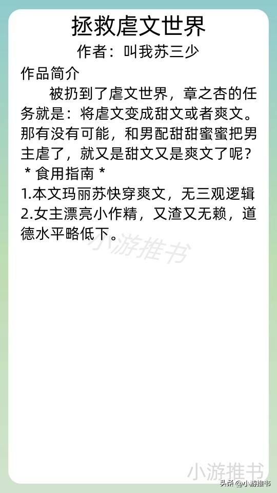 04.《拯救虐文世界》 作者:叫我苏三少 //字数:44w