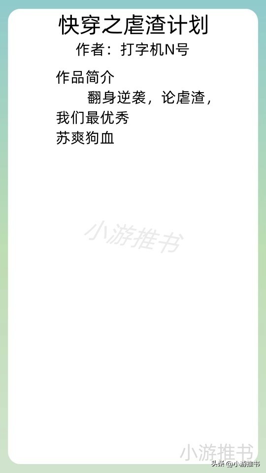 02.《快穿之虐渣计划》 作者:打字机N号 //字数:70w