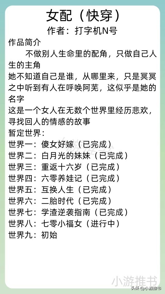 01.《女配(快穿)》 作者:打字机N号 //字数:81w