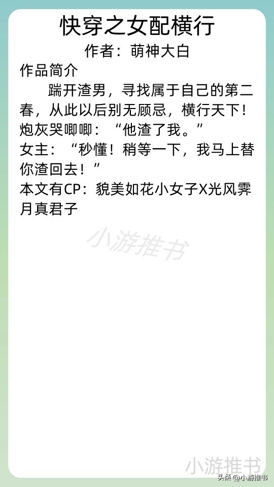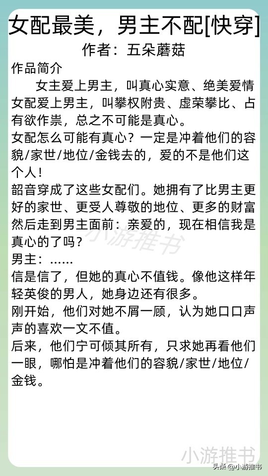 16.《女配最美,男主不配[快穿]》 作者:五朵蘑菇 //字数:105w