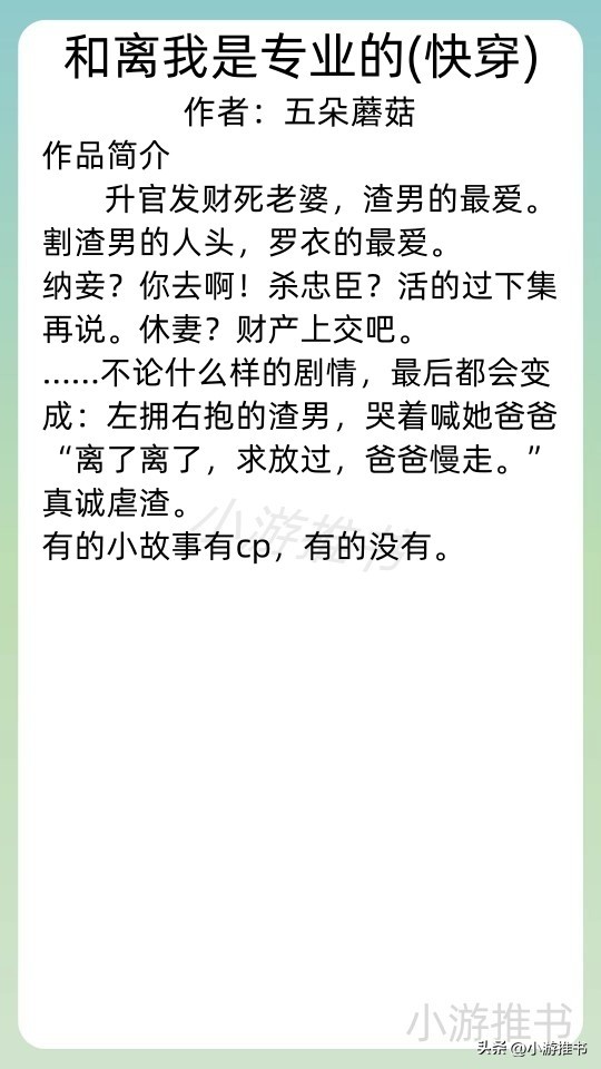 14.《和离我是专业的(快穿)》 作者:五朵蘑菇 //字数:100w