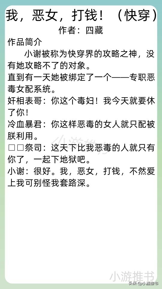 08.《我,恶女,打钱!(快穿)》 作者:四藏 //字数:97w