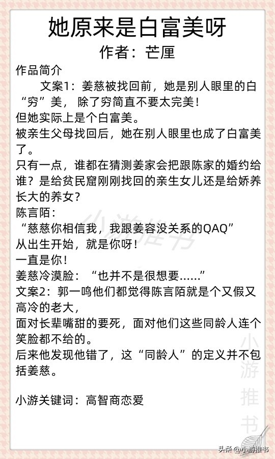 17.《她原来是白富美呀》 作者:芒厘 //字数:49w