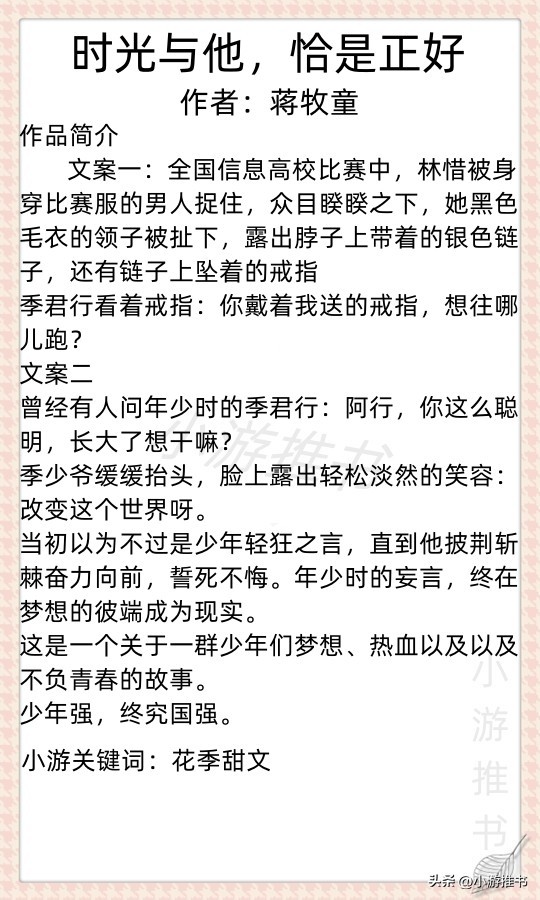 01.《时光与他,恰是正好》 作者:蒋牧童 //字数:41w