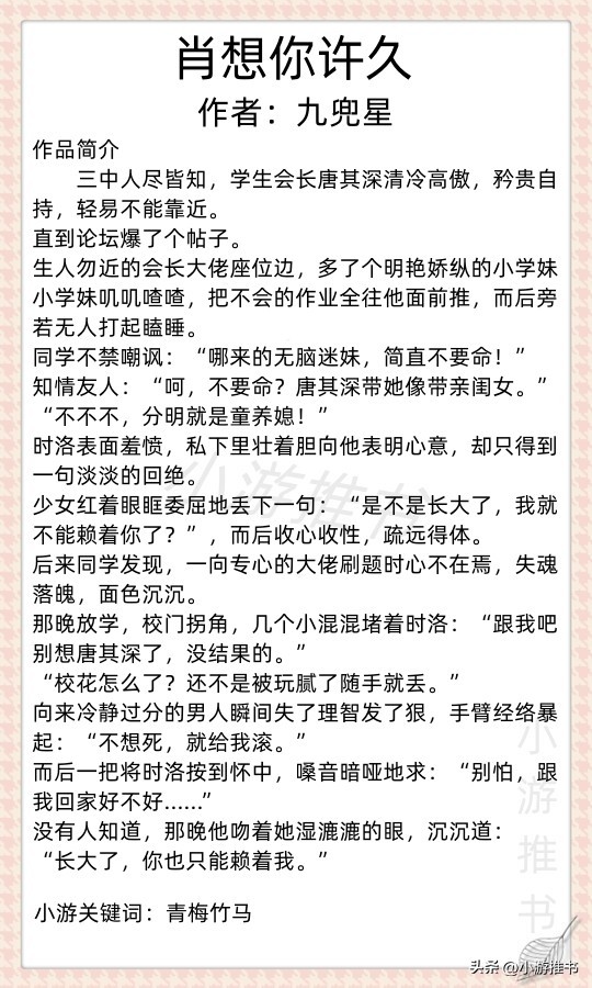 19.《肖想你许久》 作者:九兜星 //字数:35w