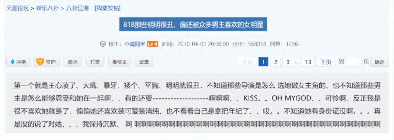 当年的豆瓣和贴吧,骂她龅牙,平胸,装嫩的不在少数