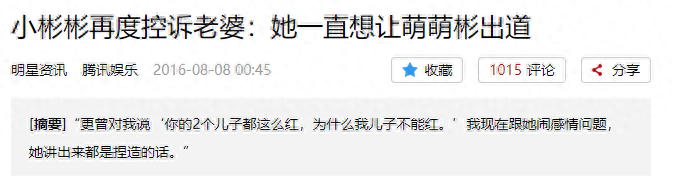虽然先后育有三子,小小彬、迷你彬、萌萌彬,却经常被指把儿子当摇钱树。