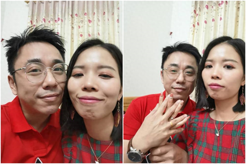 照片中两人默契地穿上红色系上衣,女友小英还大方晒出无名指上的钻戒,似乎好事将近,而温兆宇也透露两人是以“结婚为前提在交往”。