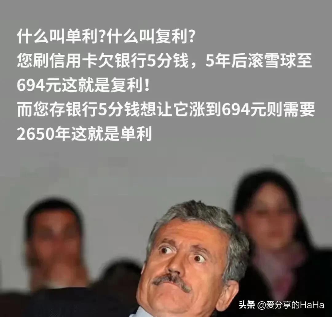 ②复利:是指在计算利息时,某一计息周期的利息是由本金加上先前周期所积累利息总额来计算的计息方式(本利和),也即通常所说的"利叠利"、"利滚利"(比较常见的有:信用卡多次分期的利息计算方式)