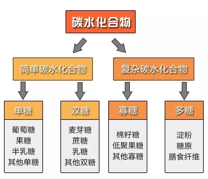 碳水化合物,俗称「糖」。它的本质其实就是不同糖类的组合,它可以是简单的,也可以是复杂的。主要分为单糖、双糖、寡糖以及多糖。