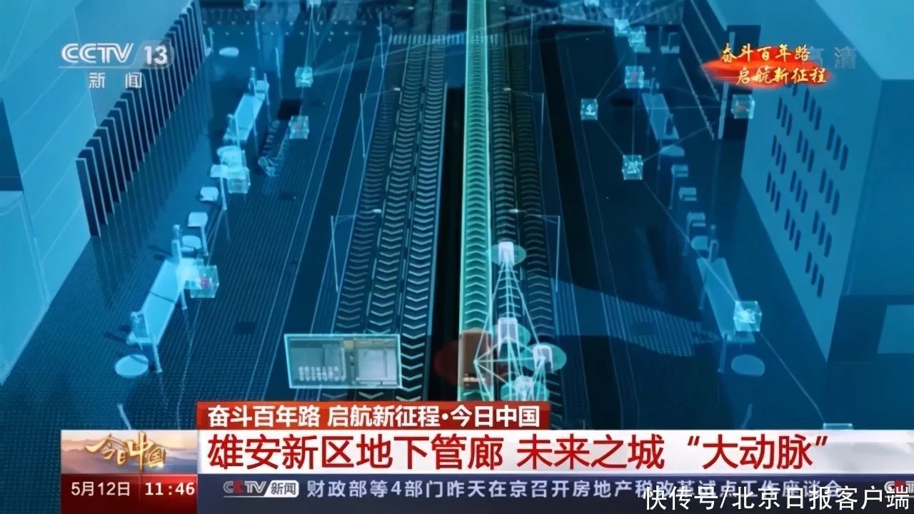 雄安新区地下综合管廊目前已贯通14.78千米,最大开挖深度22.5米,相当于7层住宅楼的高度,采用三层四舱结构:最上面是物流通道层,用于无人驾驶车,以及物流货运系统通行,运输通道宽度14.4米,高度7.8米,最宽处可容纳6台大货车并排行驶,相当于双向四车道;中间层是用来人员疏散和通风设备安装的夹层;最下面则是四个不同功能的管线舱,满足未来城市能源、电力、通讯、供水的传输需求。整个地下综合管廊都装有智能监控中心,包括监控、智能烟感等设备都会和5G挂钩。未来5G技术将被充分运用:如通过车辆无人驾驶技术,编好程序,车辆在地下可以通过5G信号,自动在停靠点卸货、装货,能有效缓解地面交通压力,提高城市运输效率。