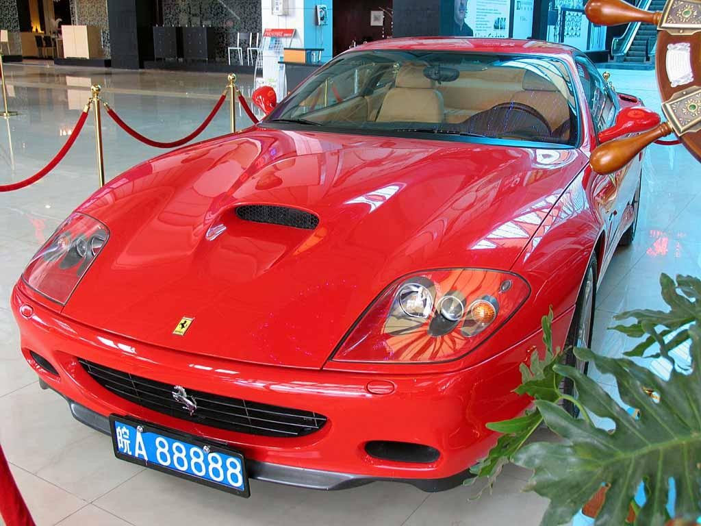 皖A88888车主是万振房地产董事长儿子万振的座驾,挂在一辆红色的法拉利上。