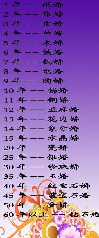 结婚几年分别叫什么婚