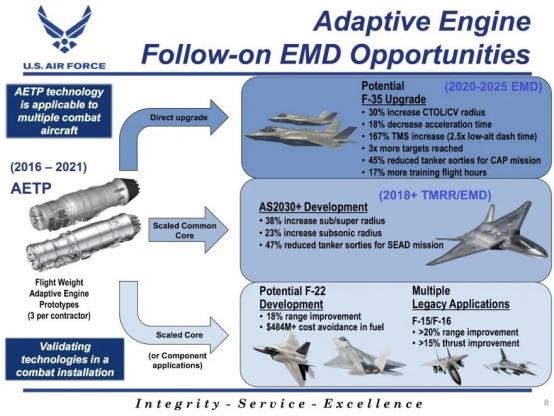 这一点也可以从美军这几年的动力发展上体现出来。战机立项,动力先行。自2023年起,美国空军的动力系统突然发生较大变动,证实美国空军在NGAD上有大想法。2023年3月,美国空军决定在2024年为F135发动机核心机升级(ECU)计划拨款2.45亿美元,并停止自适应发动机转化计划(AETP),放弃让新批次F-35战机换装XA100大推力加力式变循环涡扇发动机,转而升级现有的普惠F135发动机。