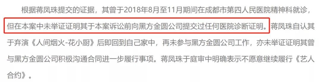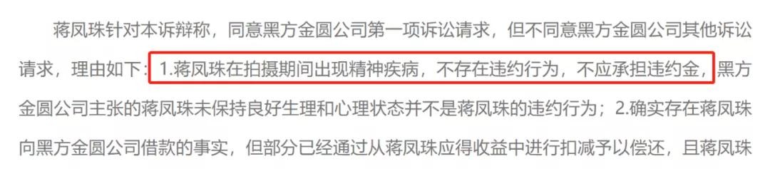 为啥?因为蒋佳恩本人在剧拍摄的时候出现精神疾病,所以这番弃演就不属于违约行为,不该还钱。