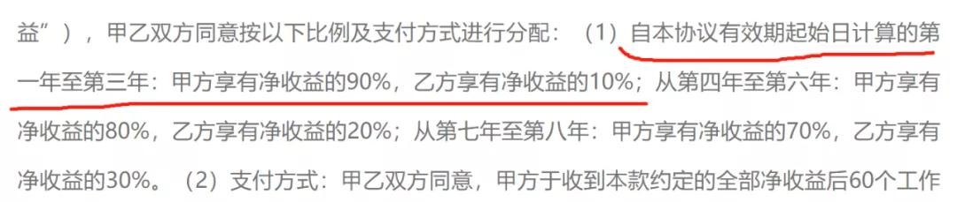 但艺人合约却很霸道,有效期内第一年到第三年,公司能拿90%的净收益,蒋佳恩只能拿到10%。