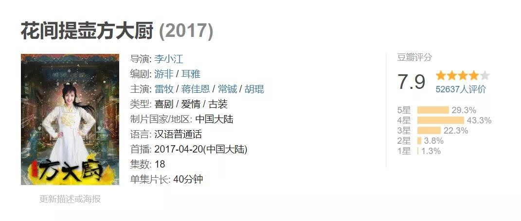 比如2017年有部美食题材的电视剧《花间提壶方大厨》,不知道友友们看没看过?