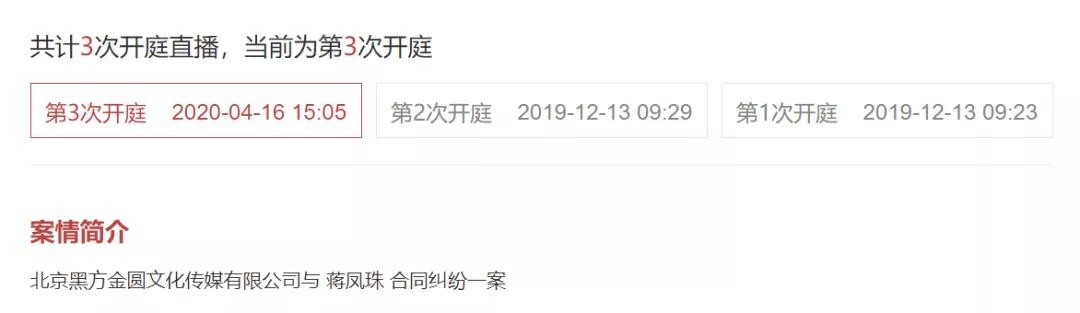 后面两方也确实跟蒋佳恩打了官司,总共开了三次庭,主要的就是2020年4月16日这第三次。