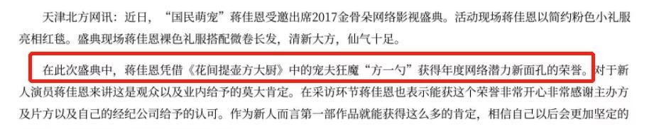 凭借这么一部好口碑的剧,蒋佳恩获得了2017年金骨朵网络影视盛典年度网络剧潜力新面孔。